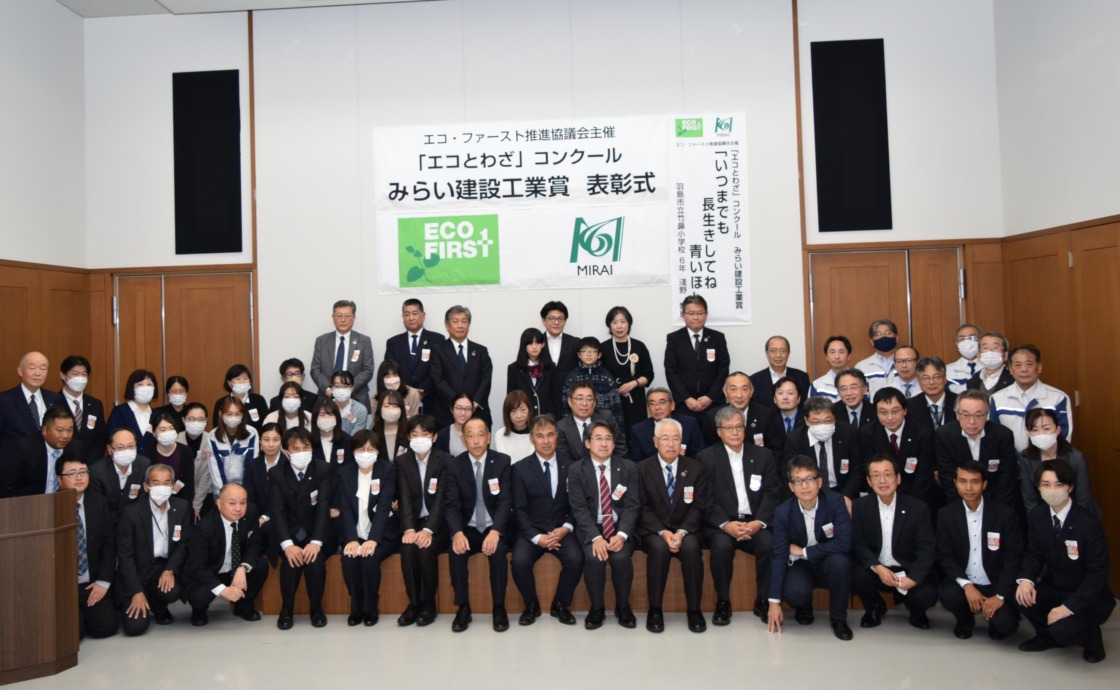 2023年12月15日(金)、エコ・ファースト推進協議会主催 エコとわざコンクール「みらい建設工業賞」表彰式を開催しました。エコとわざコンクールとは、環境省「エコ・ファースト制度」認定企業が加盟するエコ・ファースト推進協議会主催の、環境に関する創作ことわざのコンクールで、今年で14回目を迎えます。「未来の私たちに向けて、今からできることを考えよう!~2050年も美しい地球をめざして」をテーマに、全国の小中学生を対象に作品を募集し、応募総数932点の中から、羽島市立竹鼻小学校6年 淺野智恵さんの作品「いつまでも 長生きしてね 青いほし」をみらい建設工業賞に選定、表彰致しました。