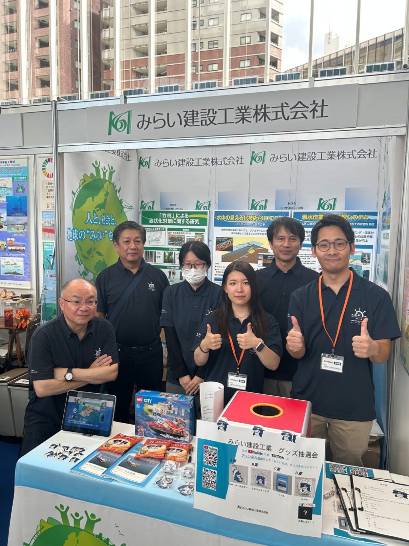 当社ブースでは、保有技術やSDGs関連(環境保護・再生可能エネルギーへの取り組み等)のパネルを展示し、多くの方に当社の事業活動を知っていただける場となりました。また、当社のキャラクターである「みらいるか」グッズをご来場者にプレゼントしたところ、好評をいただきました。